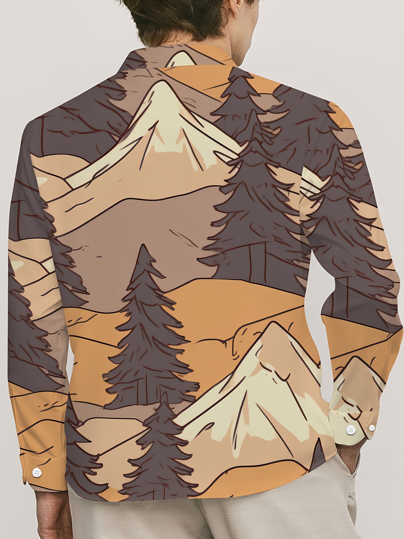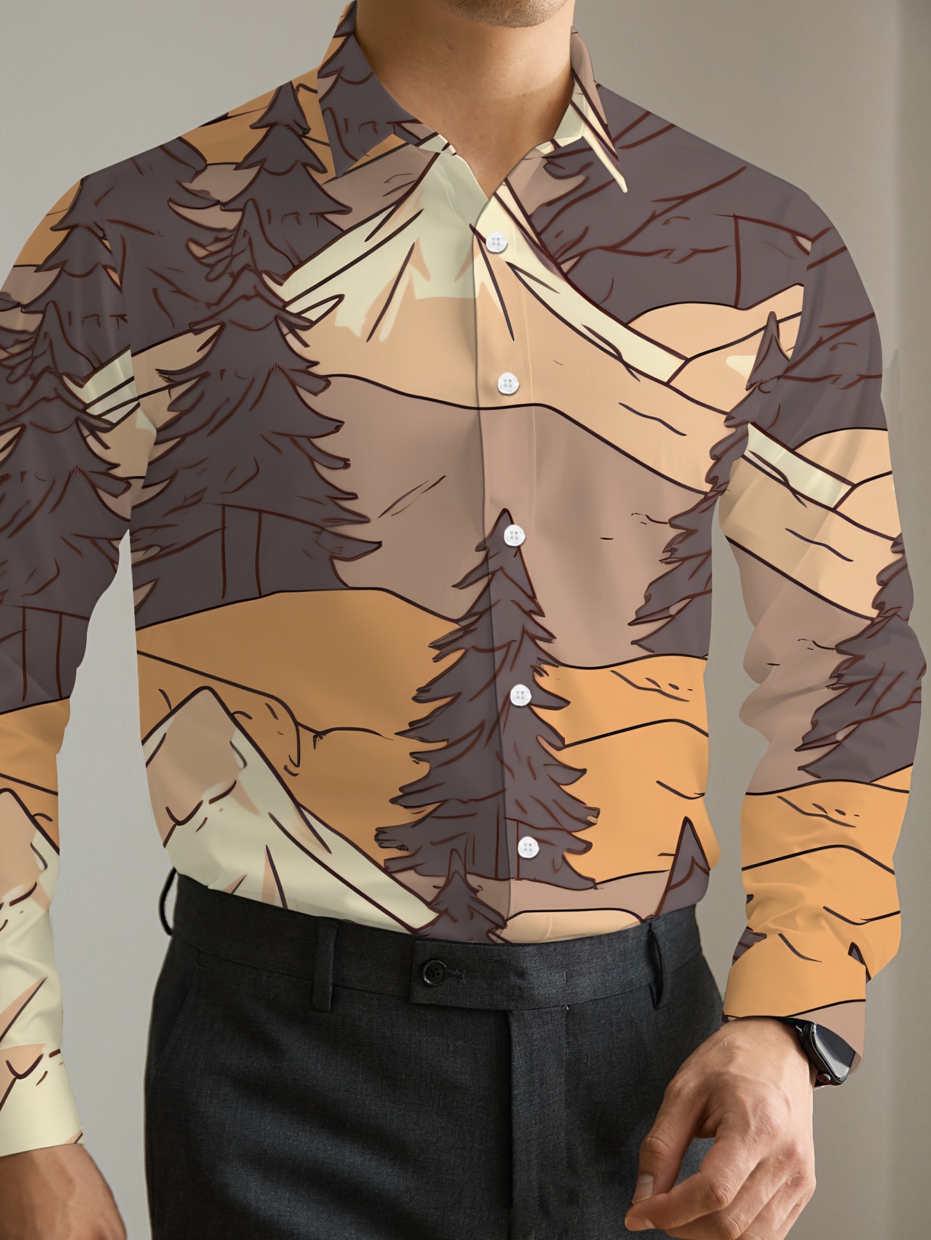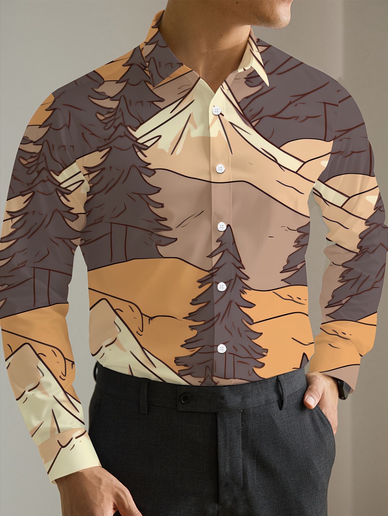 1pc Boho Style Men'S Plus Size Casual Button-Down Shirt with Pockets, Polyester Printed Fabric, Regular Fit, Non-Stretch, Spring/Autumn Collection