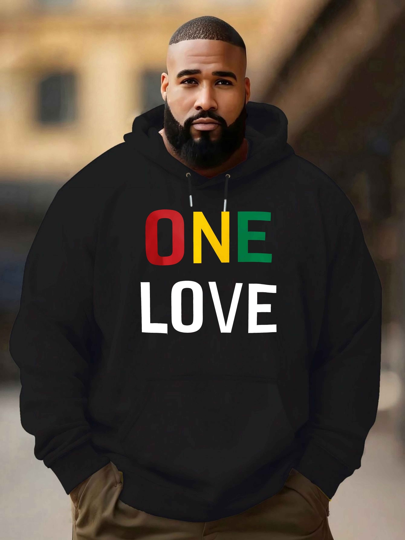 1pc Unisex "One Love" Print Hoodie - Casual Polyester Sweatshirt with Slight Stretch, Knit Fabric, Regular Fit, Patterned Collar Hood - Versatile Fashion Brand Sweater for Spring and Autumn, Plus Size