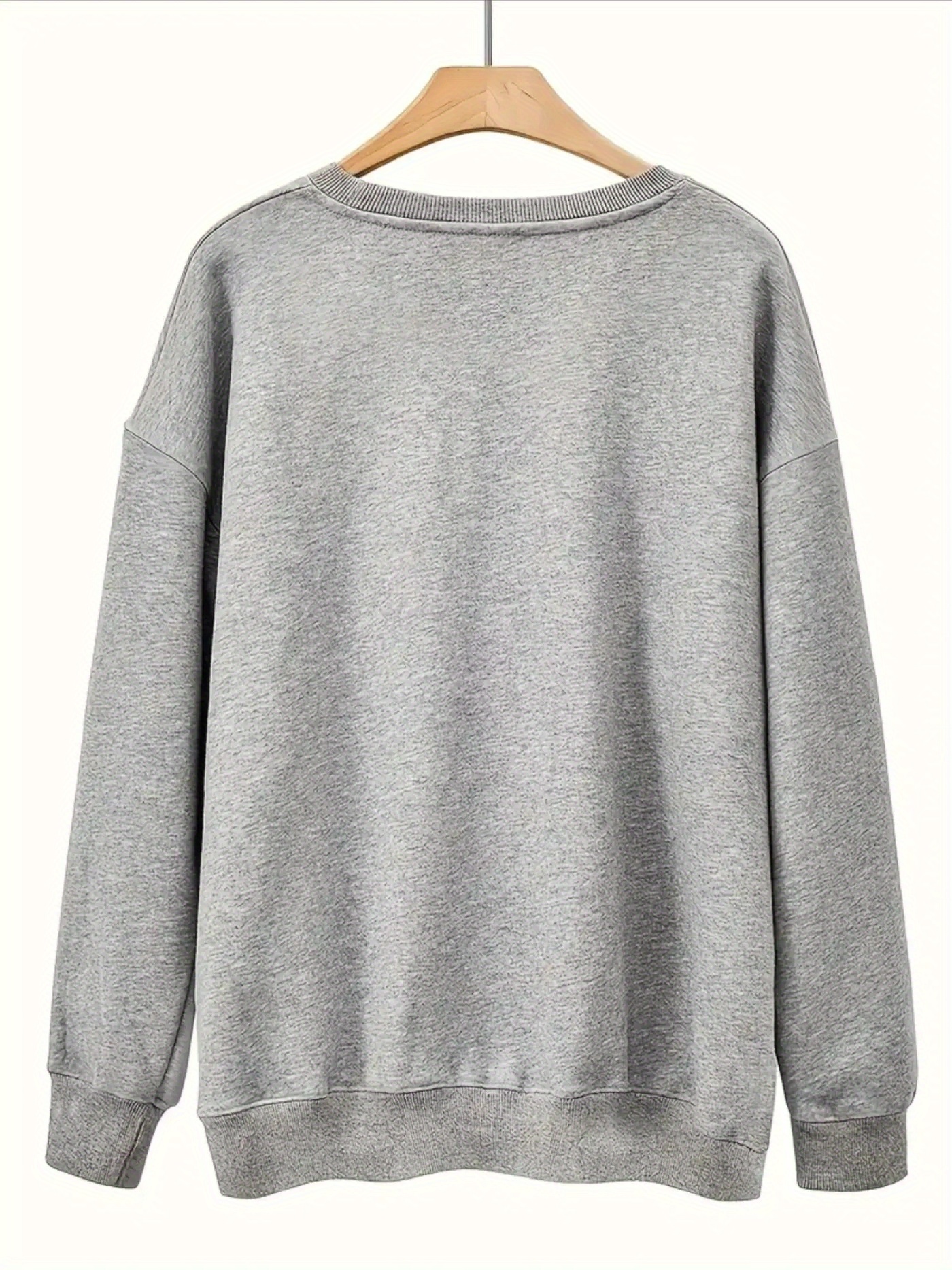 [Cozy Plus Size Sweatshirt] Polyester Plus Size Women's White Bow Print Sweatshirt - Cozy, Comfortable, Machine Washable Fall & Winter Pullover with Digital Butterfly Design