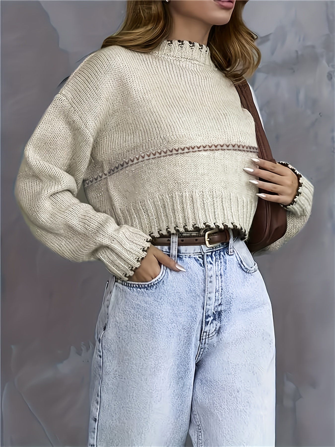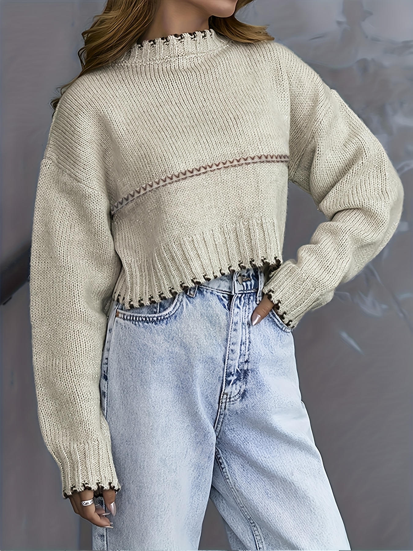 [Elegant Striped Pullover] Soft & Cozy Elegant Long Sleeve Striped Pullover for Women | Chic Round Neck, Fall/Winter Collection, Solid Color Design, Perfect for Casual or Stylish Outfits