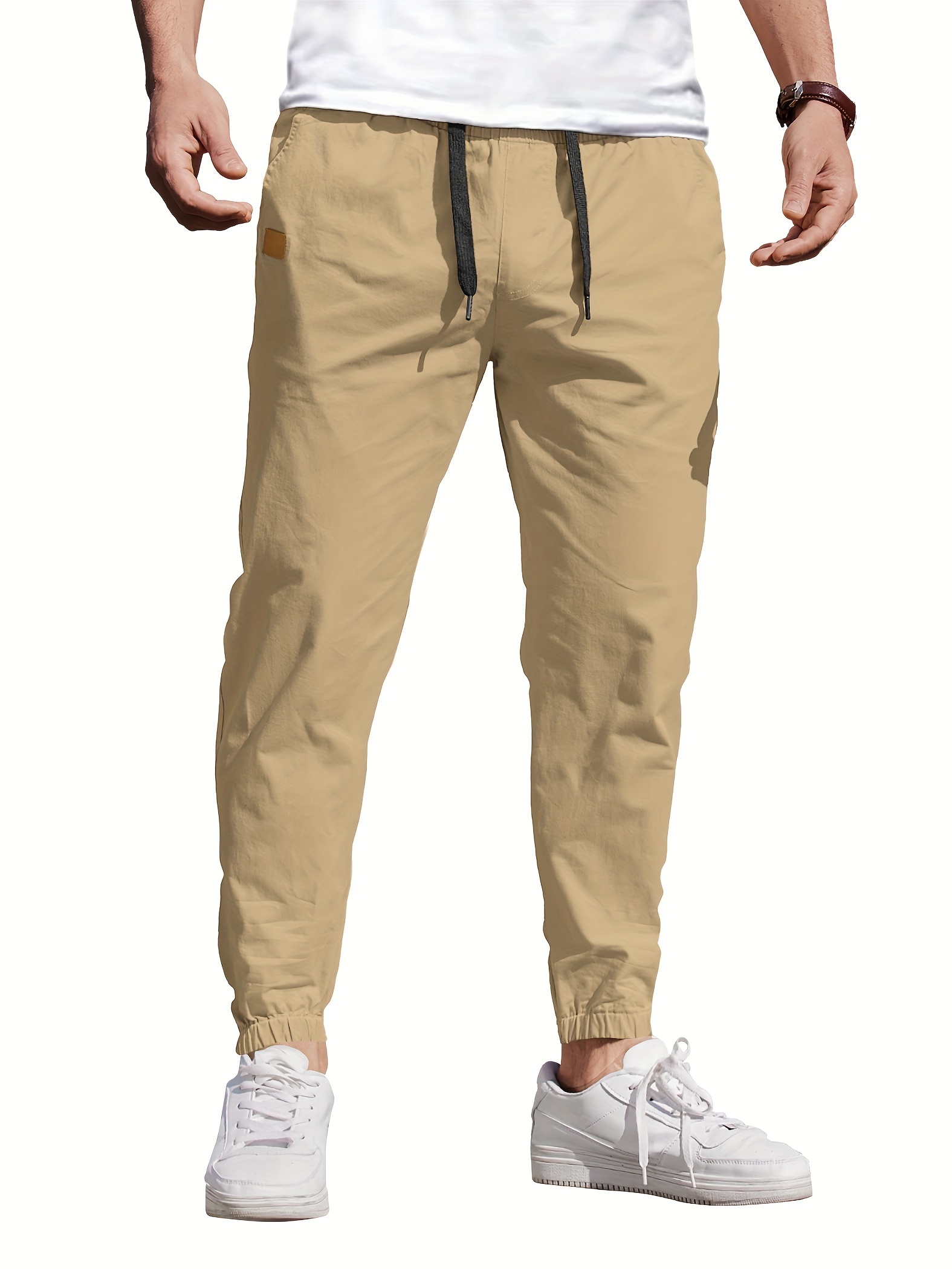 Mens Comfy Stretch Joggers - Elastic Drawstring Waist, Chino Cargo Pockets, Hiking Outdoor Track Sweatpants for Casual Daily Wear - Breathable, Soft, Quick-Drying Fabric