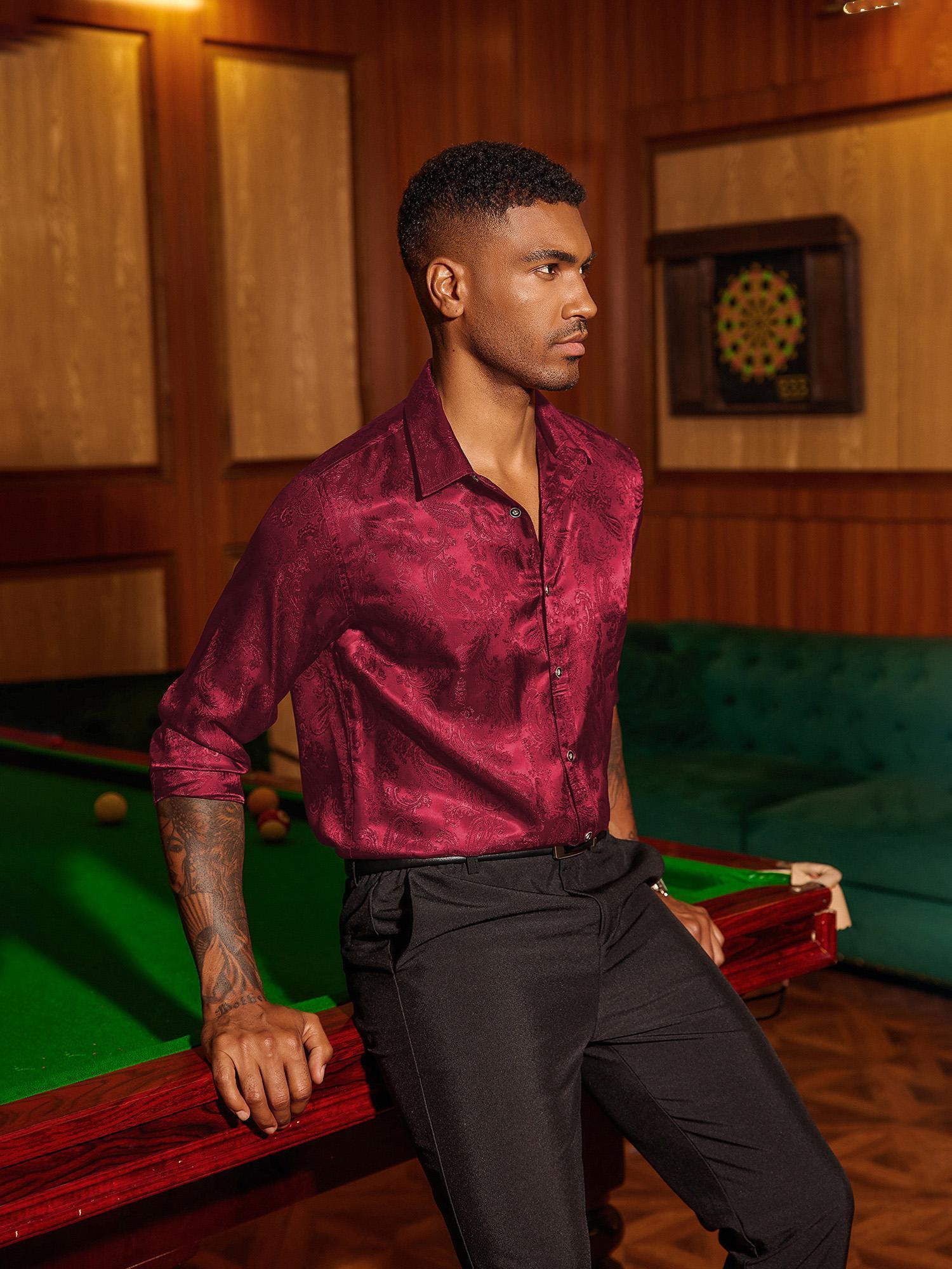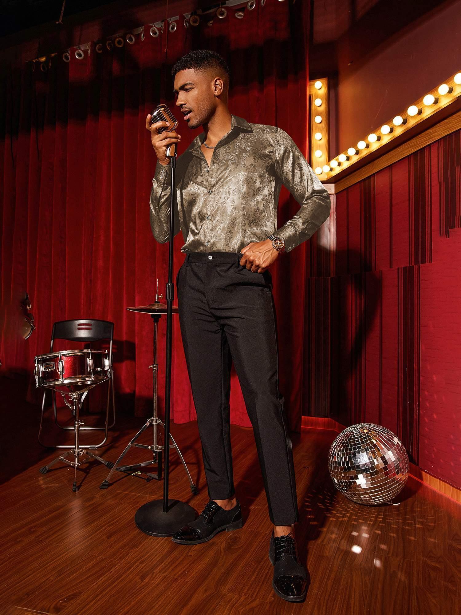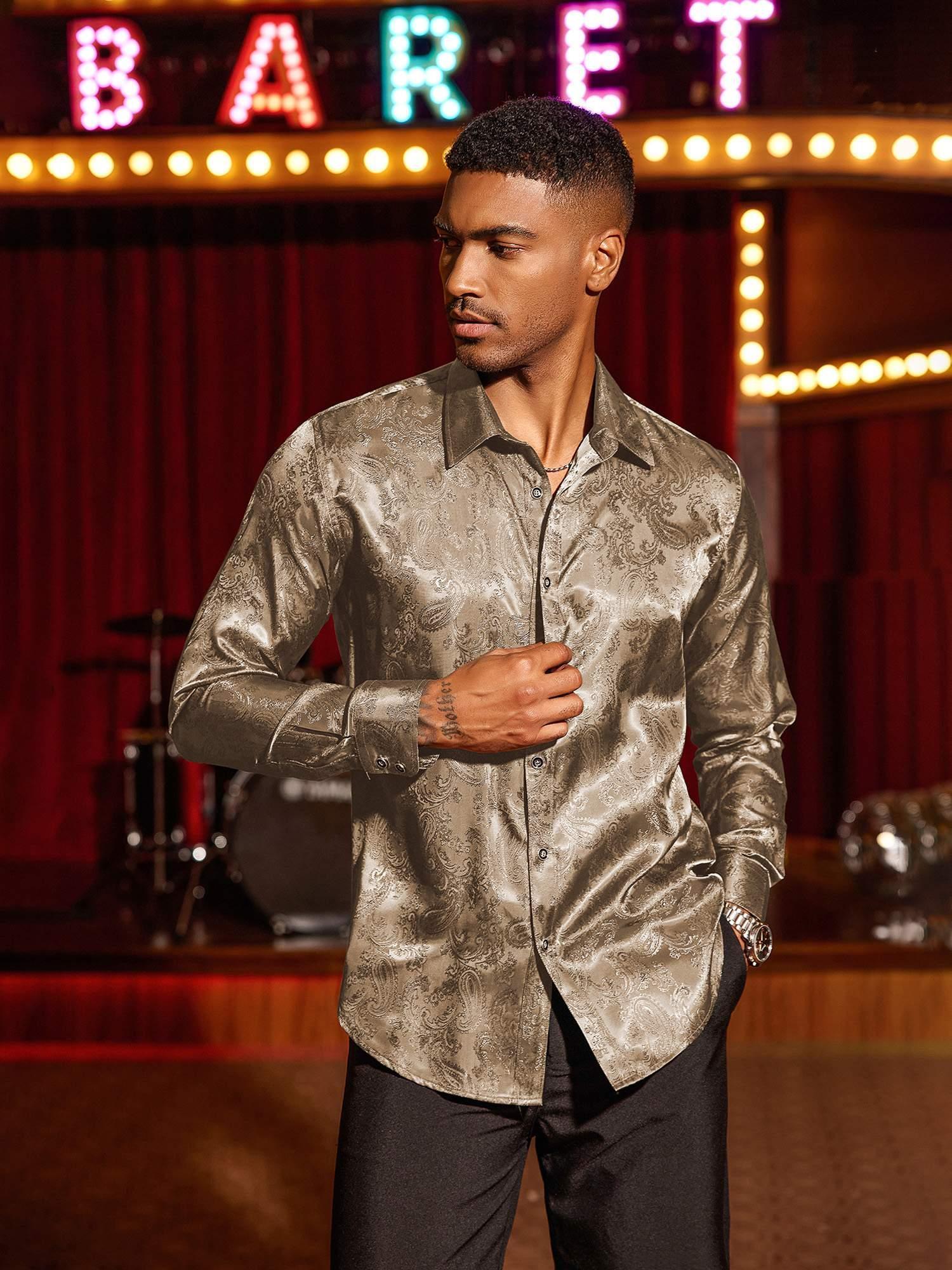 Men's Long Sleeve Paisley Button Down Shirts Floral Print Shirt For Wedding Party Prom