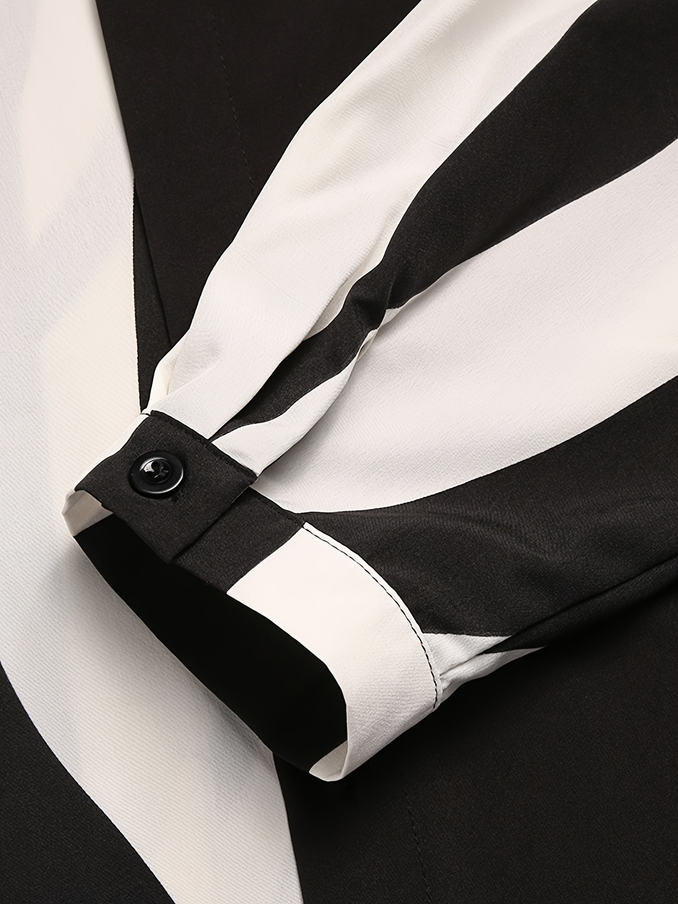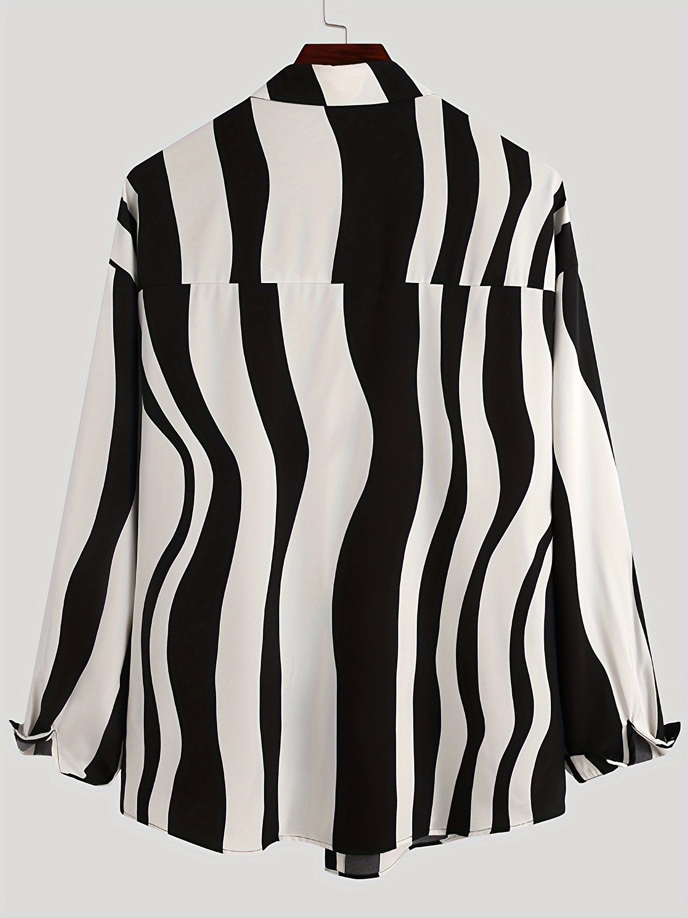Plus Size Men's Long Sleeve Casual Shirt - Stripe Patchwork Design, Turn Down Collar, Button Closure, Polyester Fabric, Machine Washable and Dry Cleanable