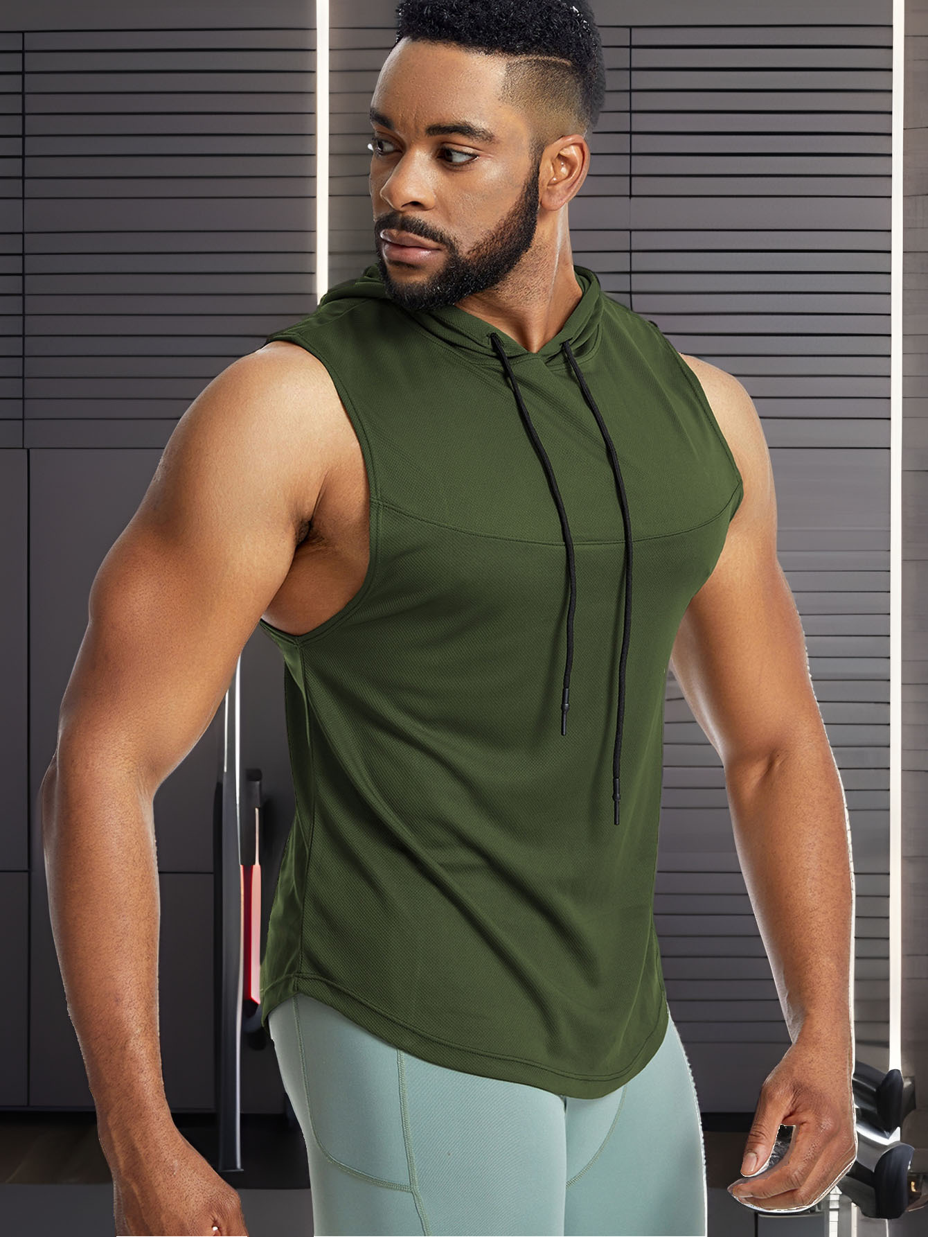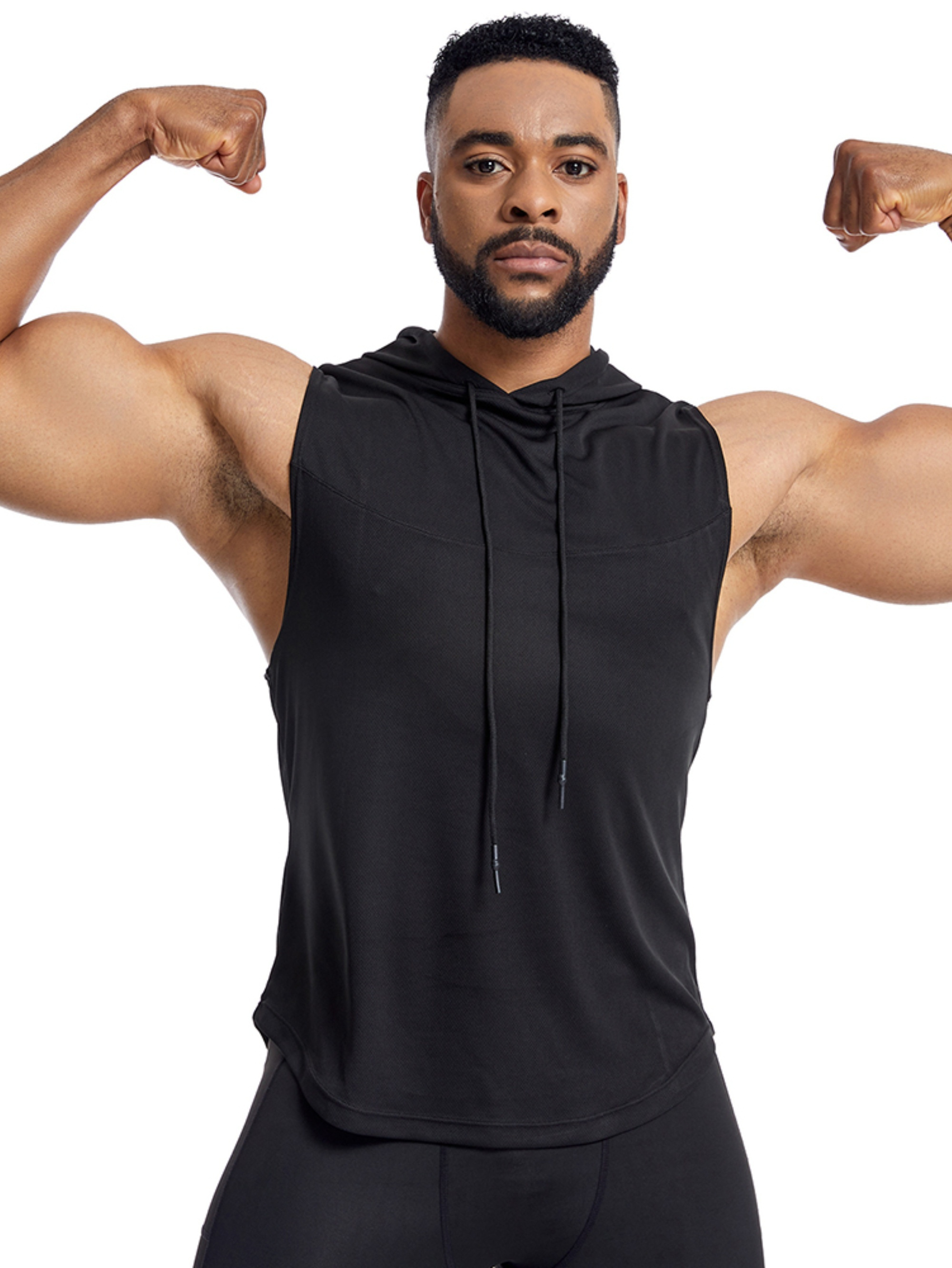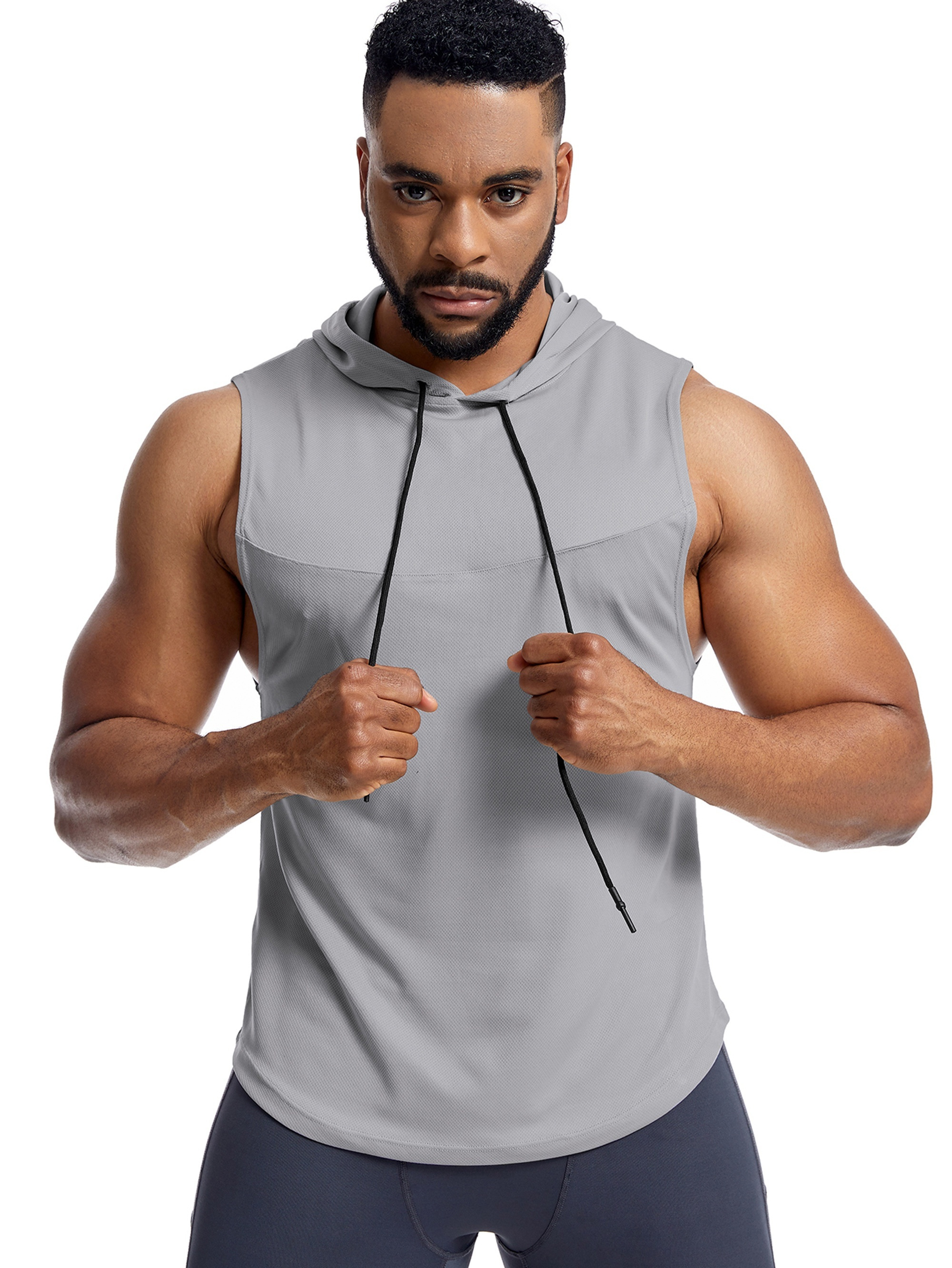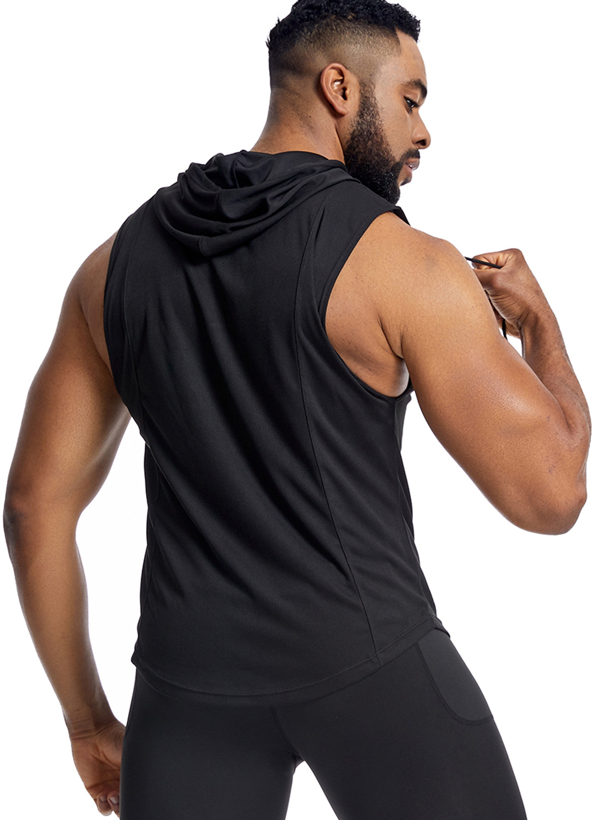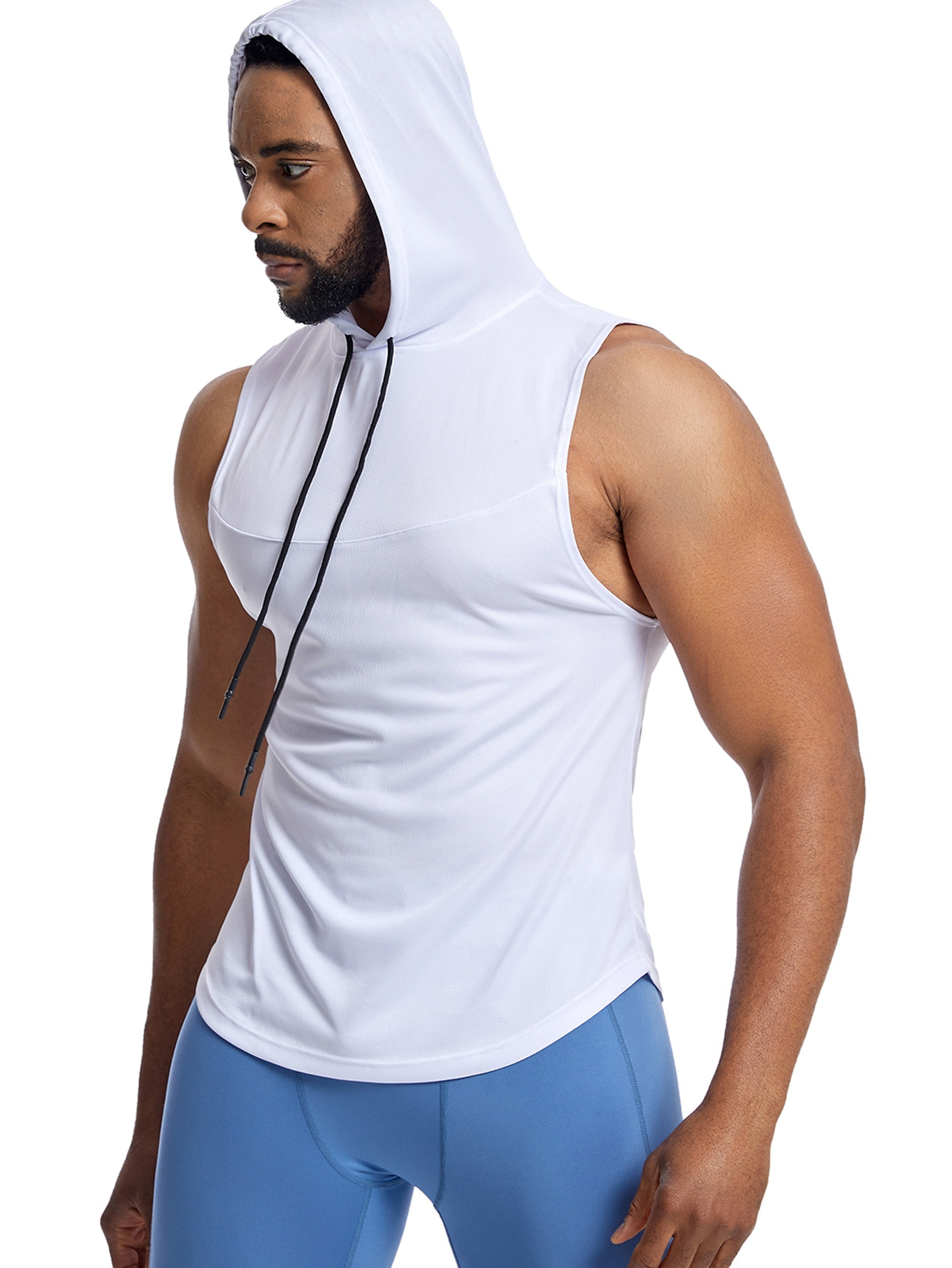 Men'S Vest Quick-Drying Sports Sleeveless Fitness Wear Basketball Vest Mesh Hooded with Drawstring