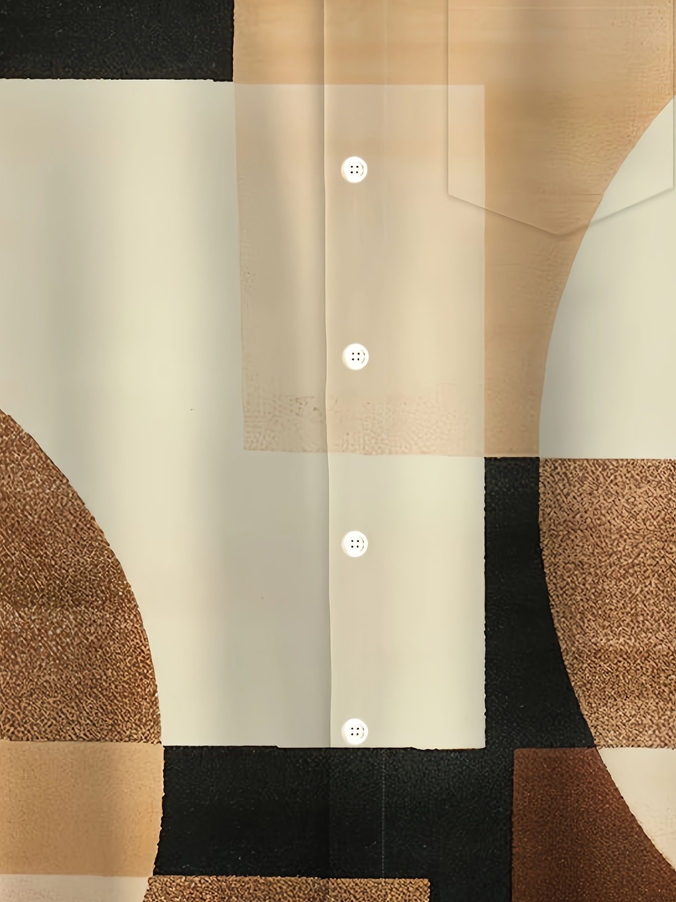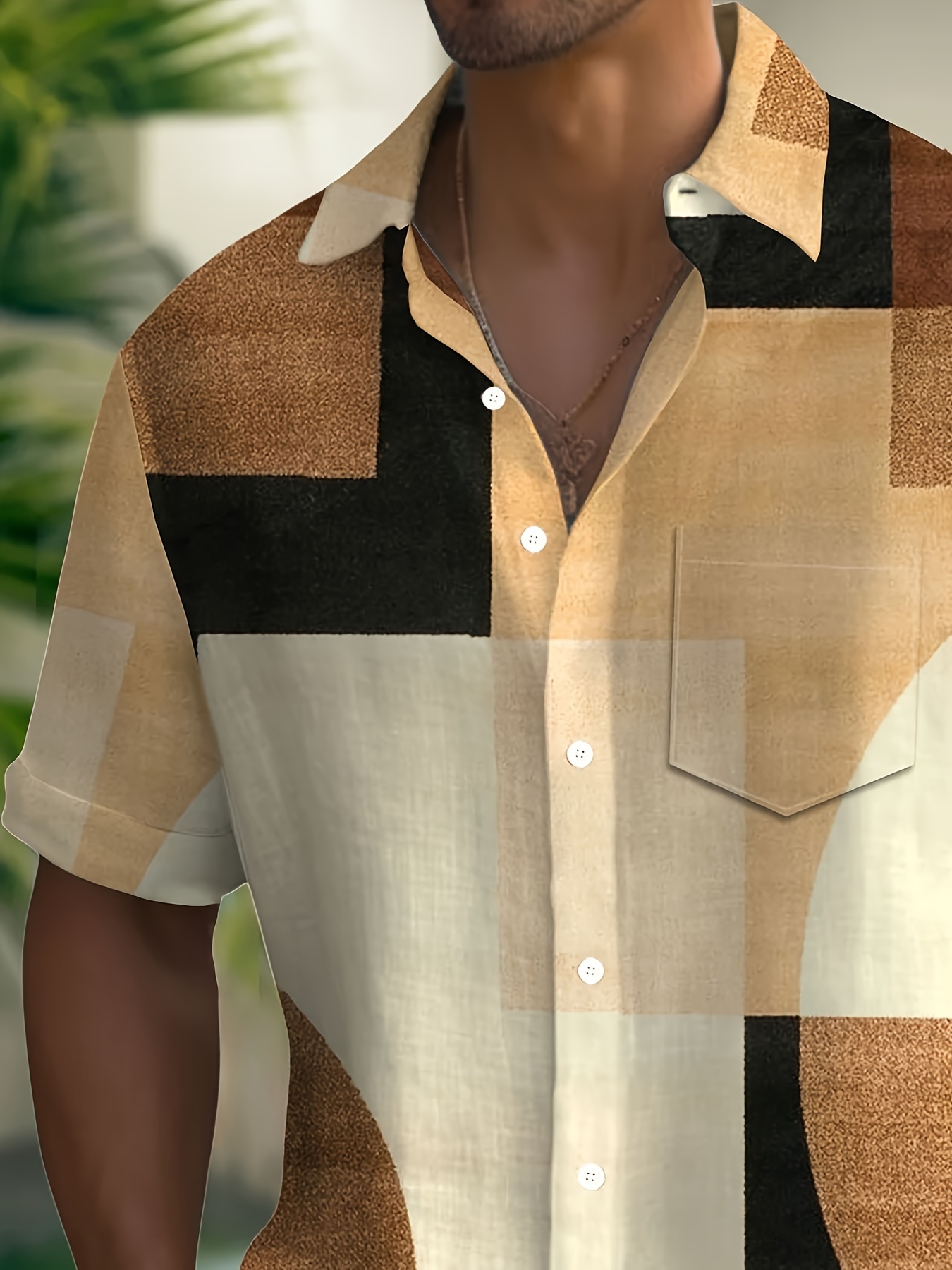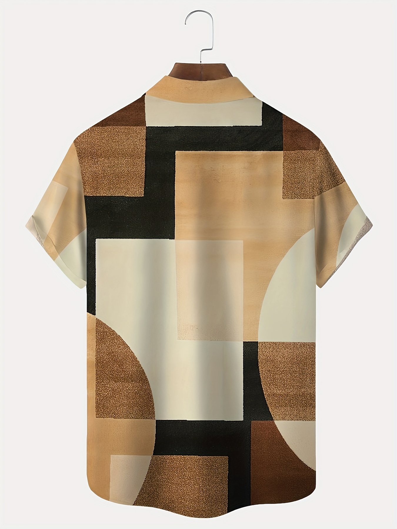 Men's Vintage Geometric Color Block 3D Print Button-Up Shirt with Pocket - Breathable Polyester, Summer Fashion, PLUS SIZE