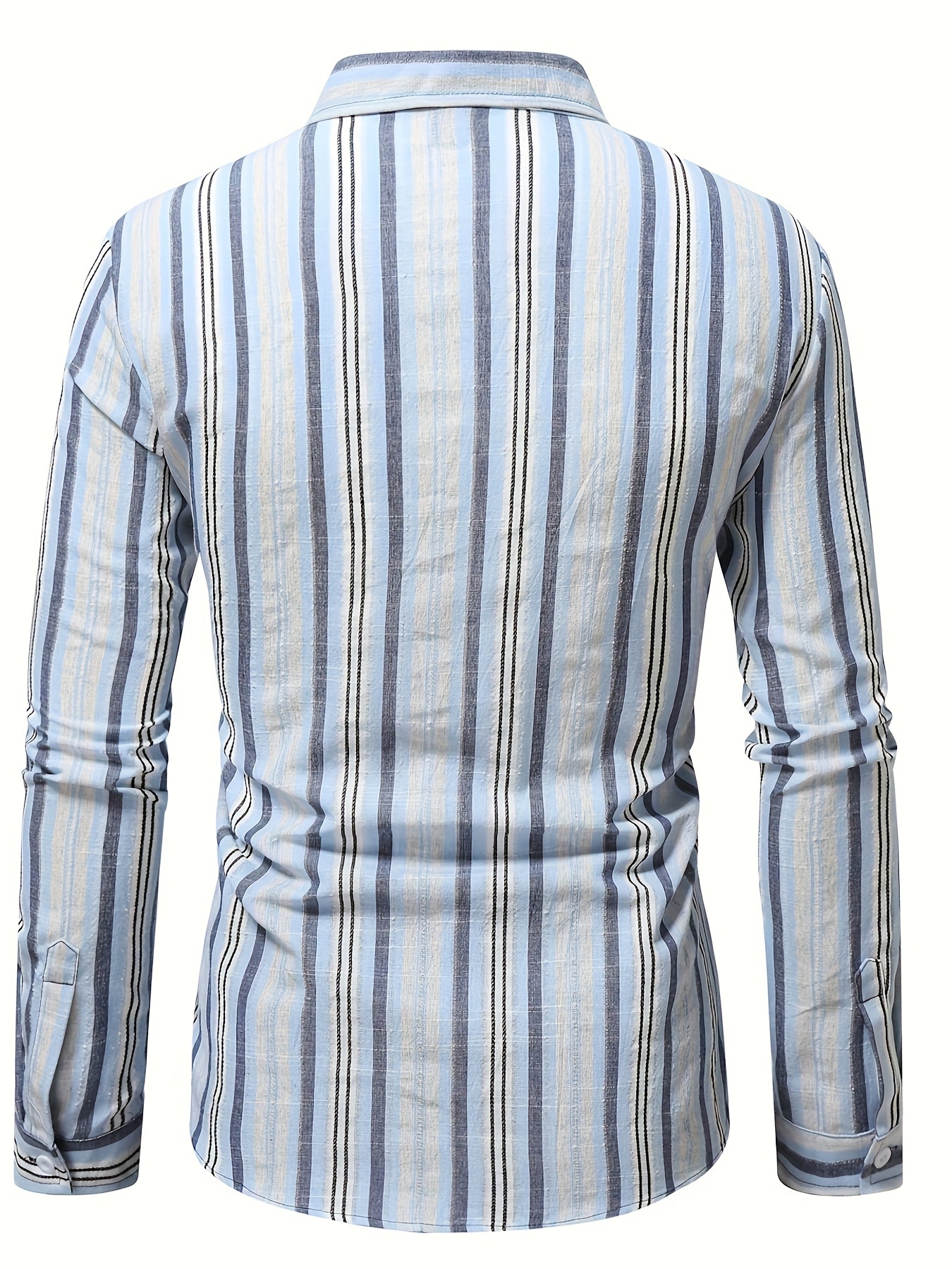 Plus Size Men's Plaid/Striped Shirt Spring Fall Winter Long Sleeve Shirt, Men's Clothing