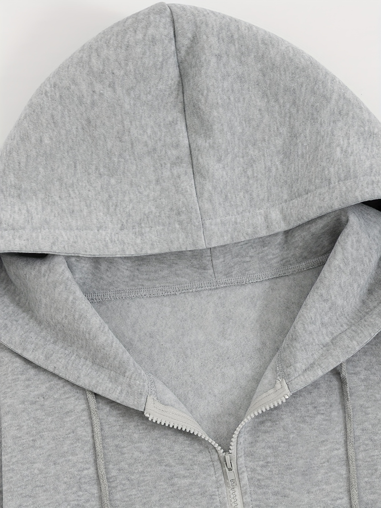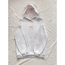 Women'S Casual Gray Hoodie with Double Bow Print - Long Sleeve, Zip-Up Pullover, All-Season Comfort, Casual Wear Hoodie|Casual Style Hoodie|Zippered Hoodie