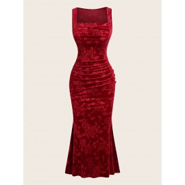 Women's Elegant Embossed Rose Long Dress