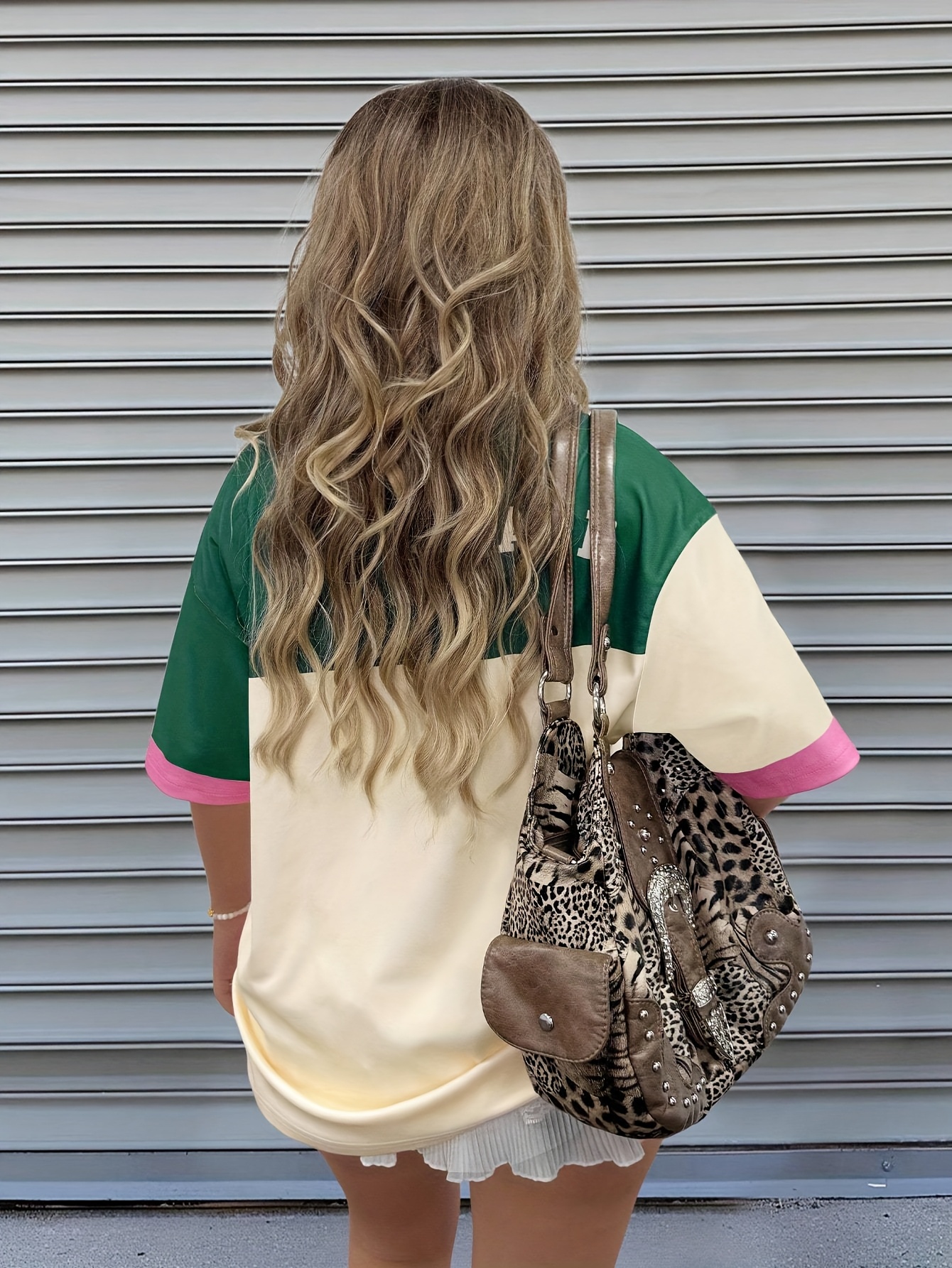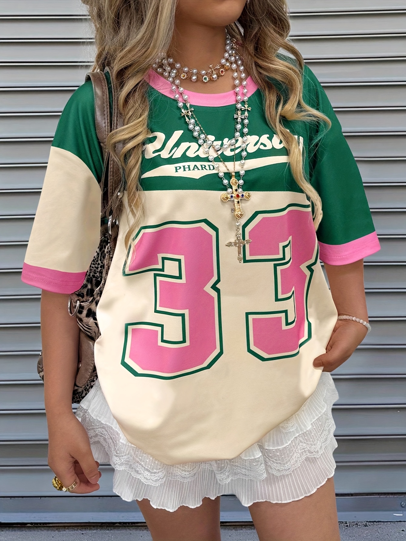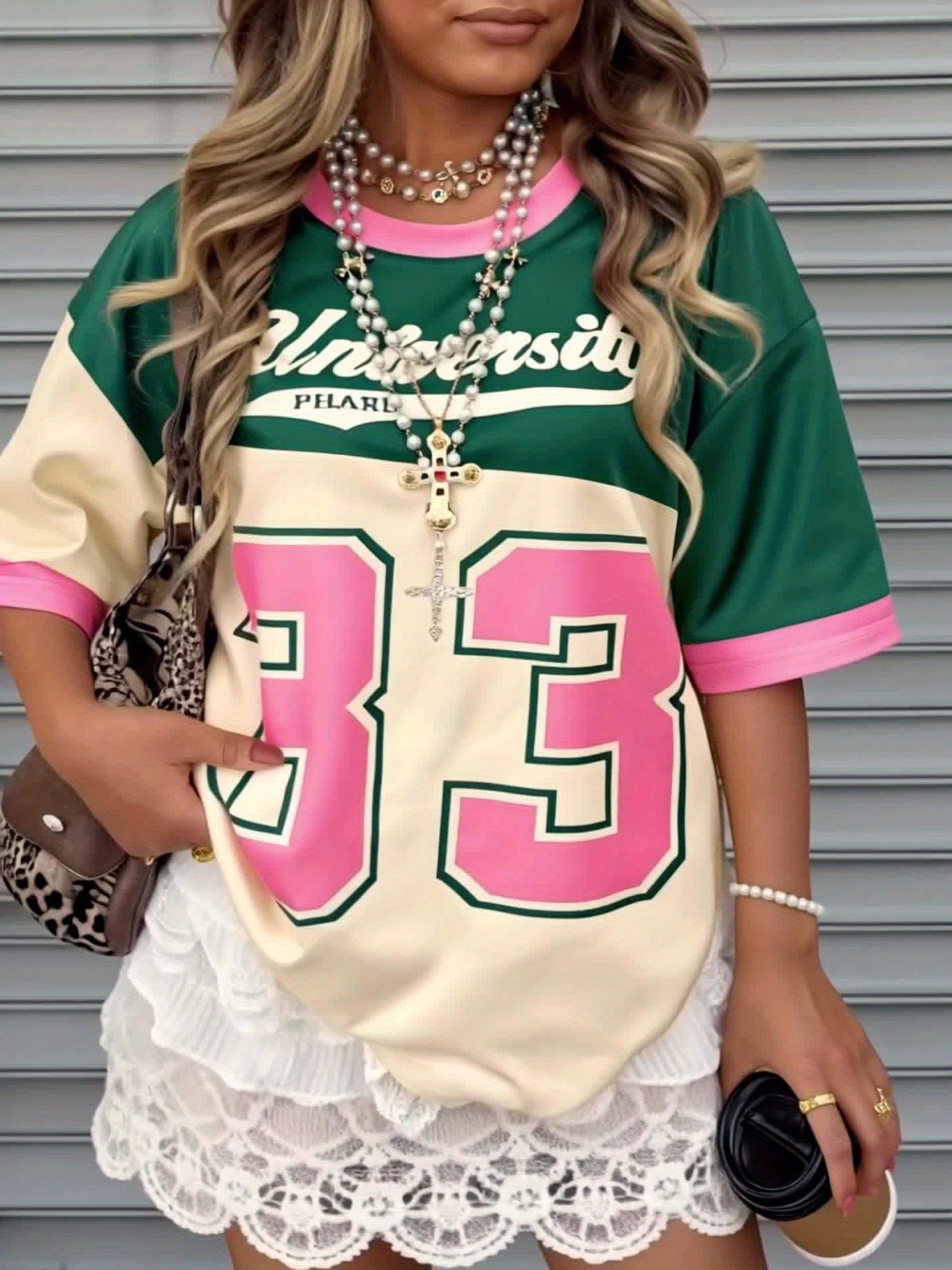[Retro Y2K Colorblock Tee] Retro Vintage Y2K Women's T-Shirt - Pastel Green & Pink Colorblock Tee | Machine Washable, All-Season Casual Top, Bold Letter Print, Versatile Clothing