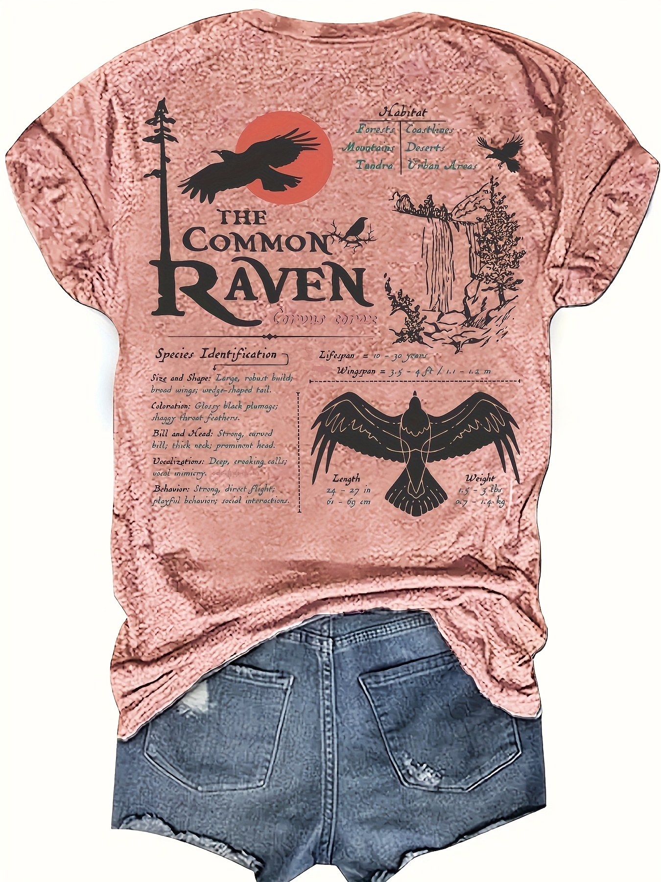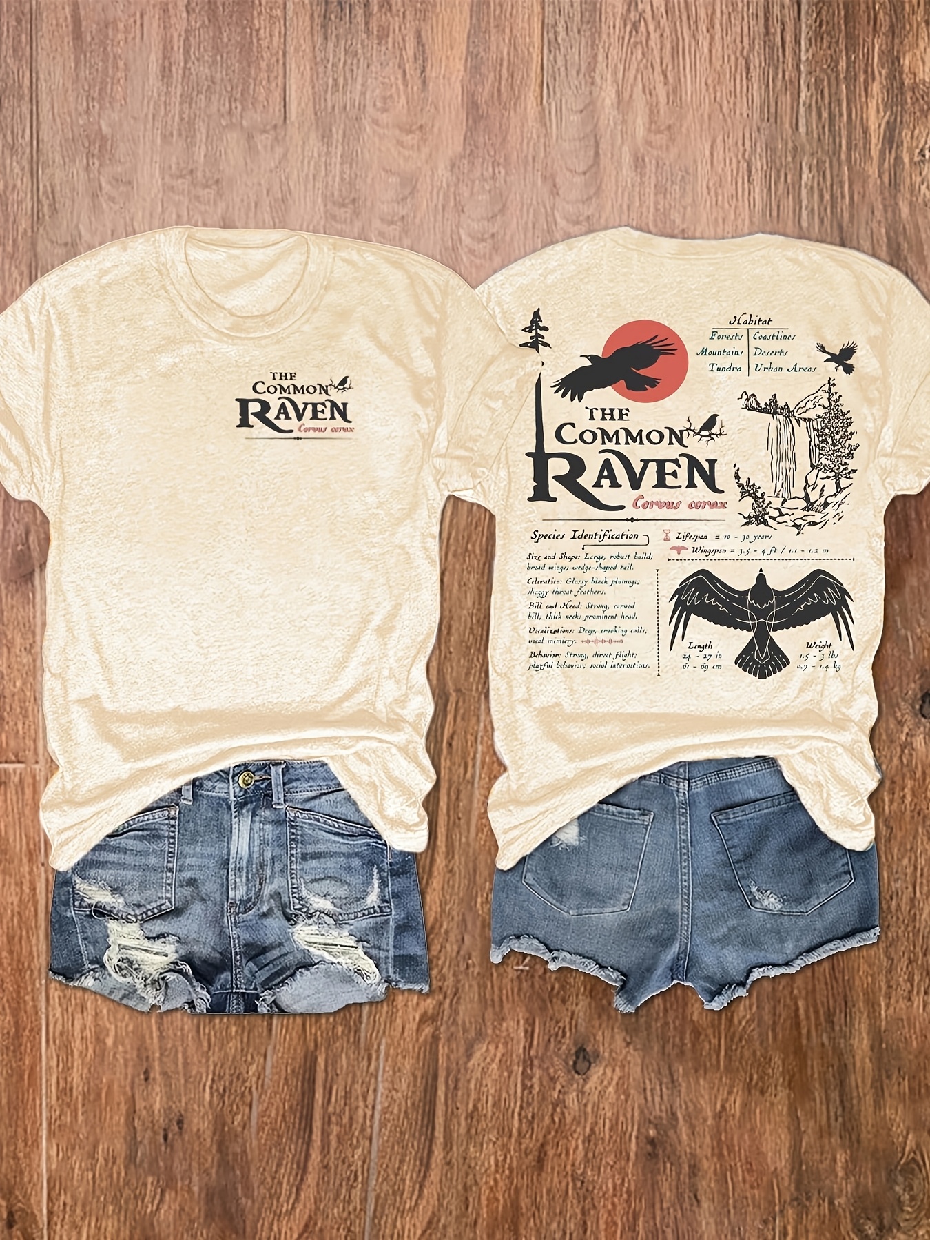 Casual Bird Lover's Printed Crew Neck T-Shirt - Women's Short Sleeve Top - Women's Clothing