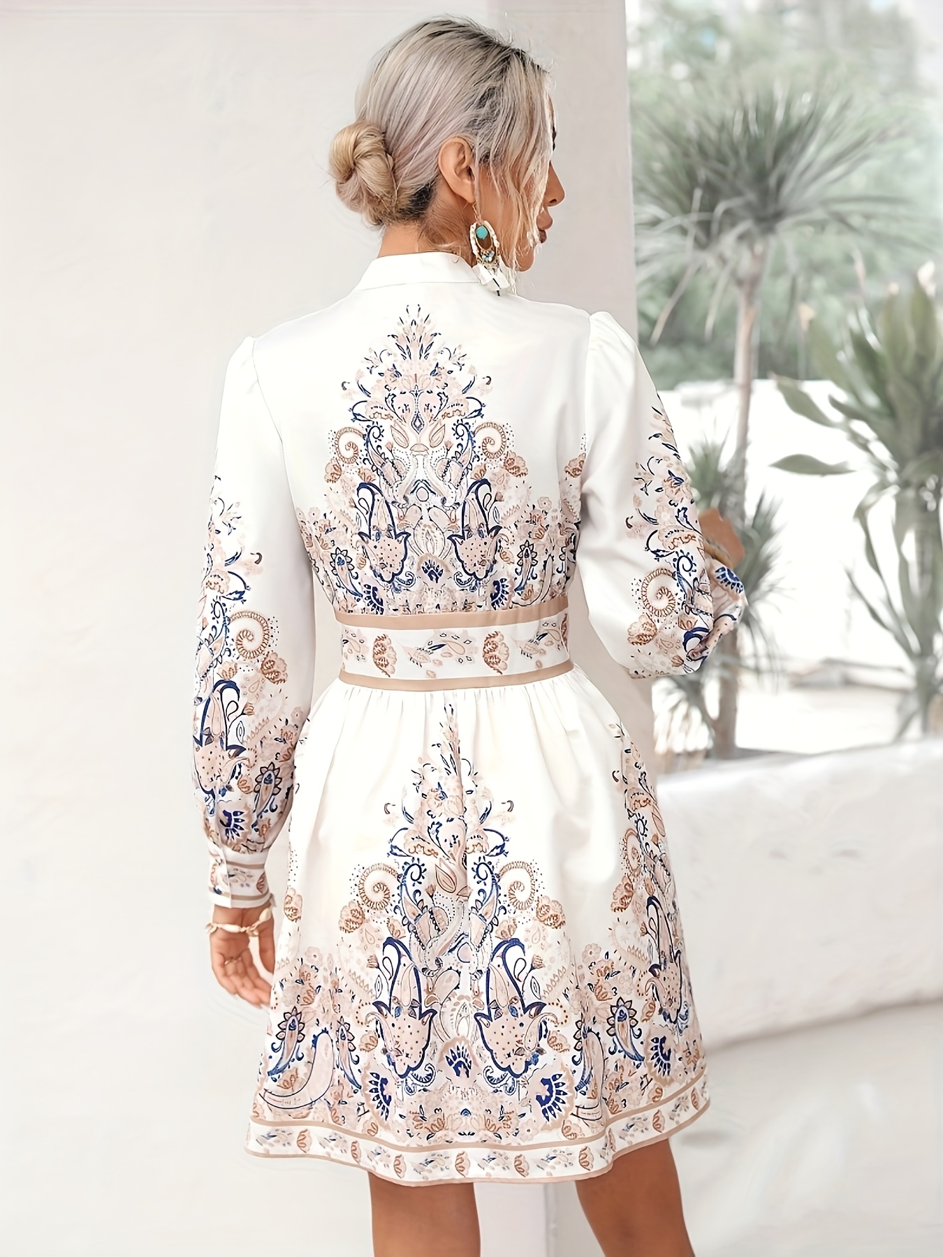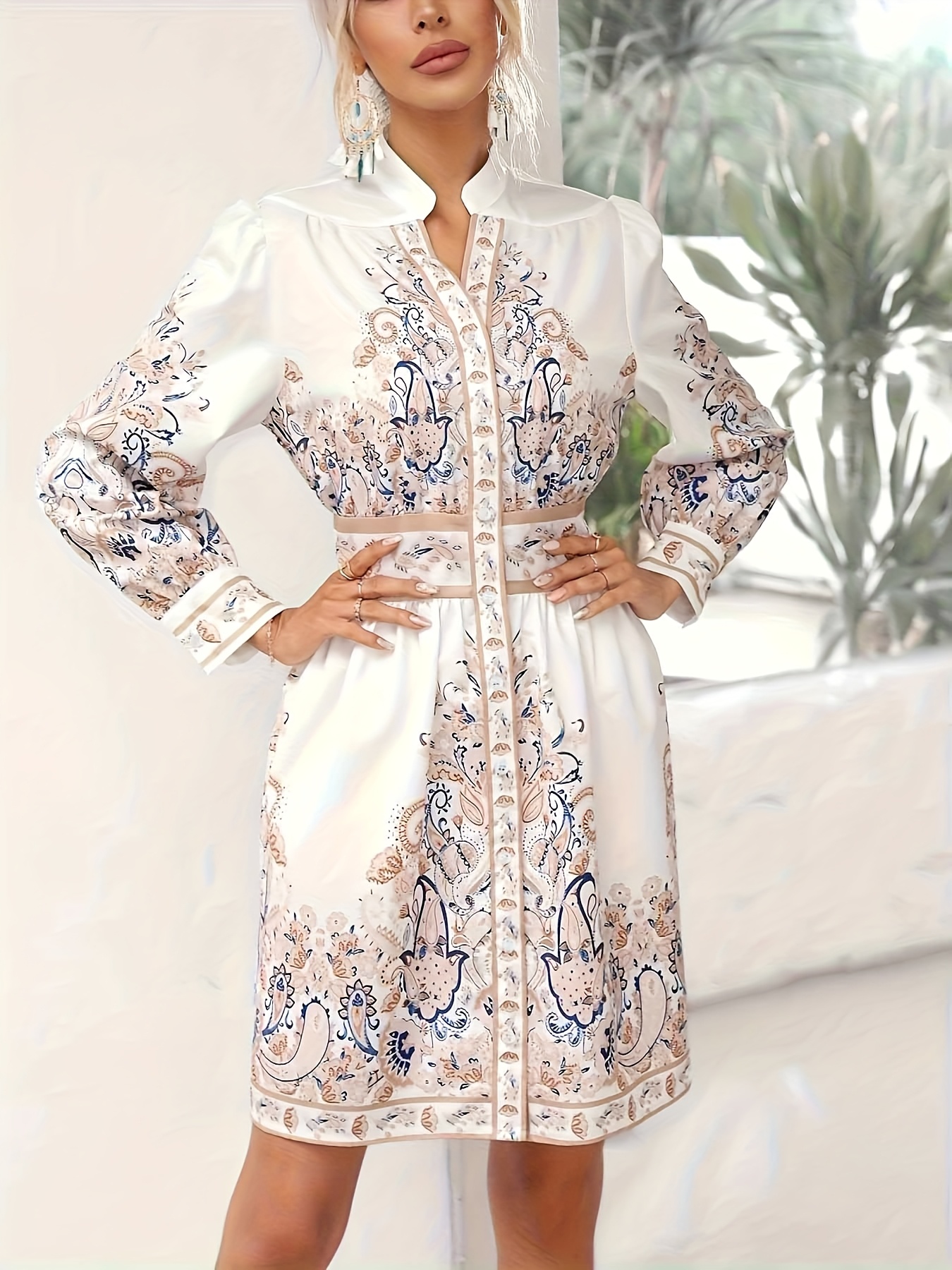 Women's Bohemian Floral Print Button-Front Closure, Machine Washable Vacation Outfit for Women, Formal Casual Events, Floral Print Blouse, Autumn Clothing, Nontransparent Fabric