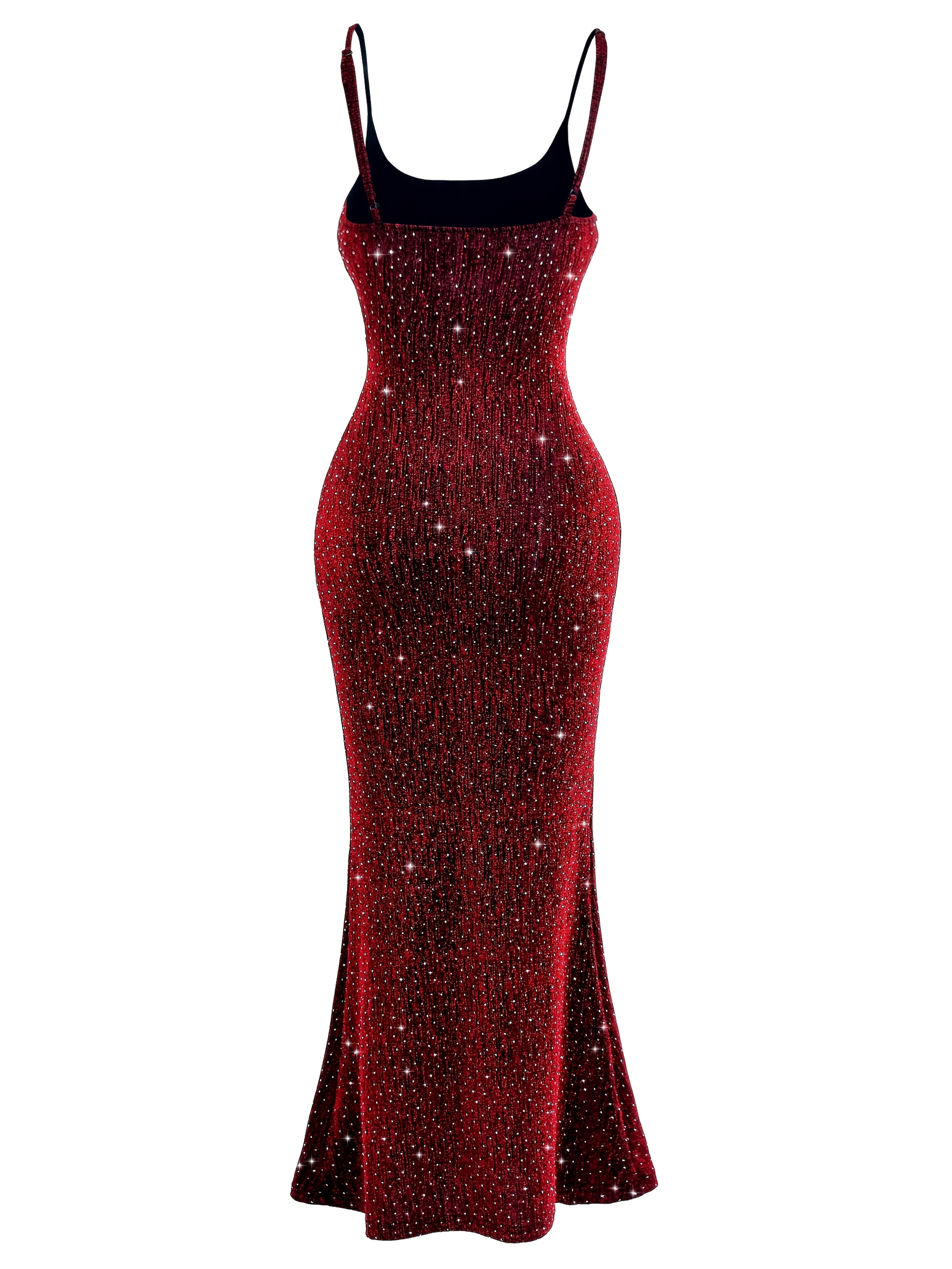 Spring/Summer Adjustable Strap Crystal Embellished Backless Dress with Chest Pad