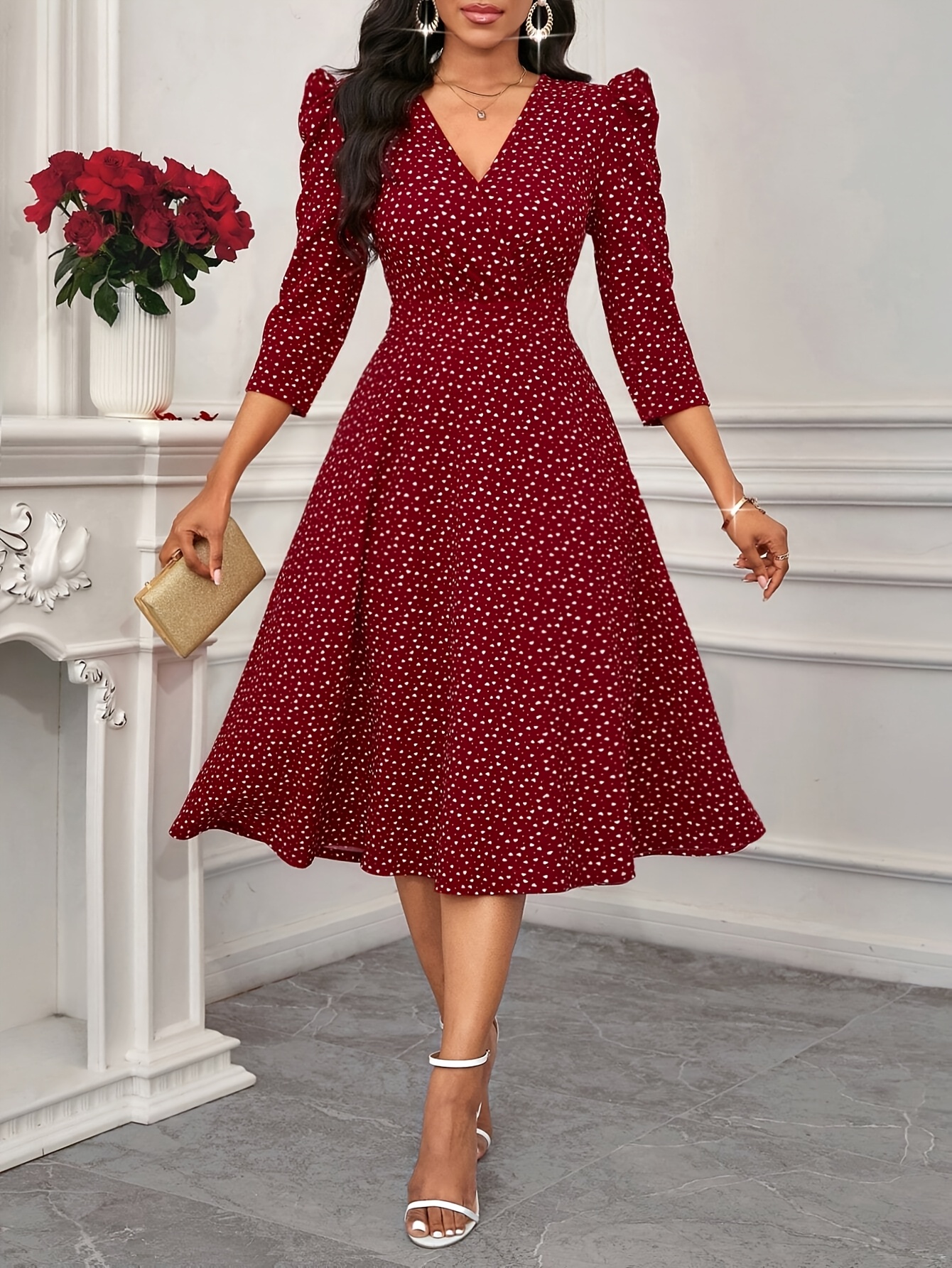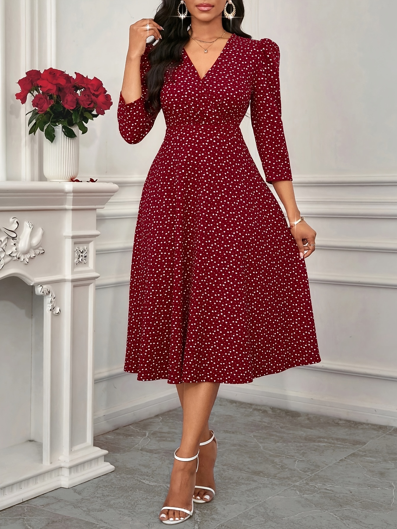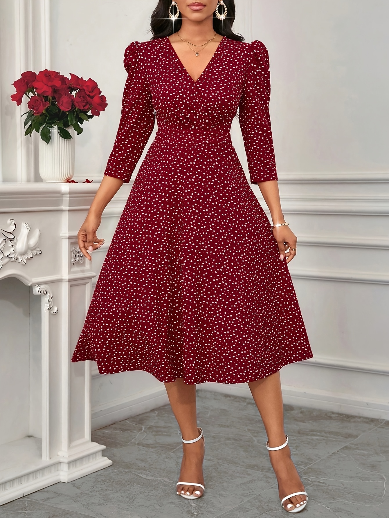 Women's Elegant Red Formal & Everyday dress - Flared skirt, Machine Washable Party, Work, Date Outfit - All-Season Chic Women's Dress, Workwear Attire, Flowy Fabric Gown, Comfortable Material, Professional Women