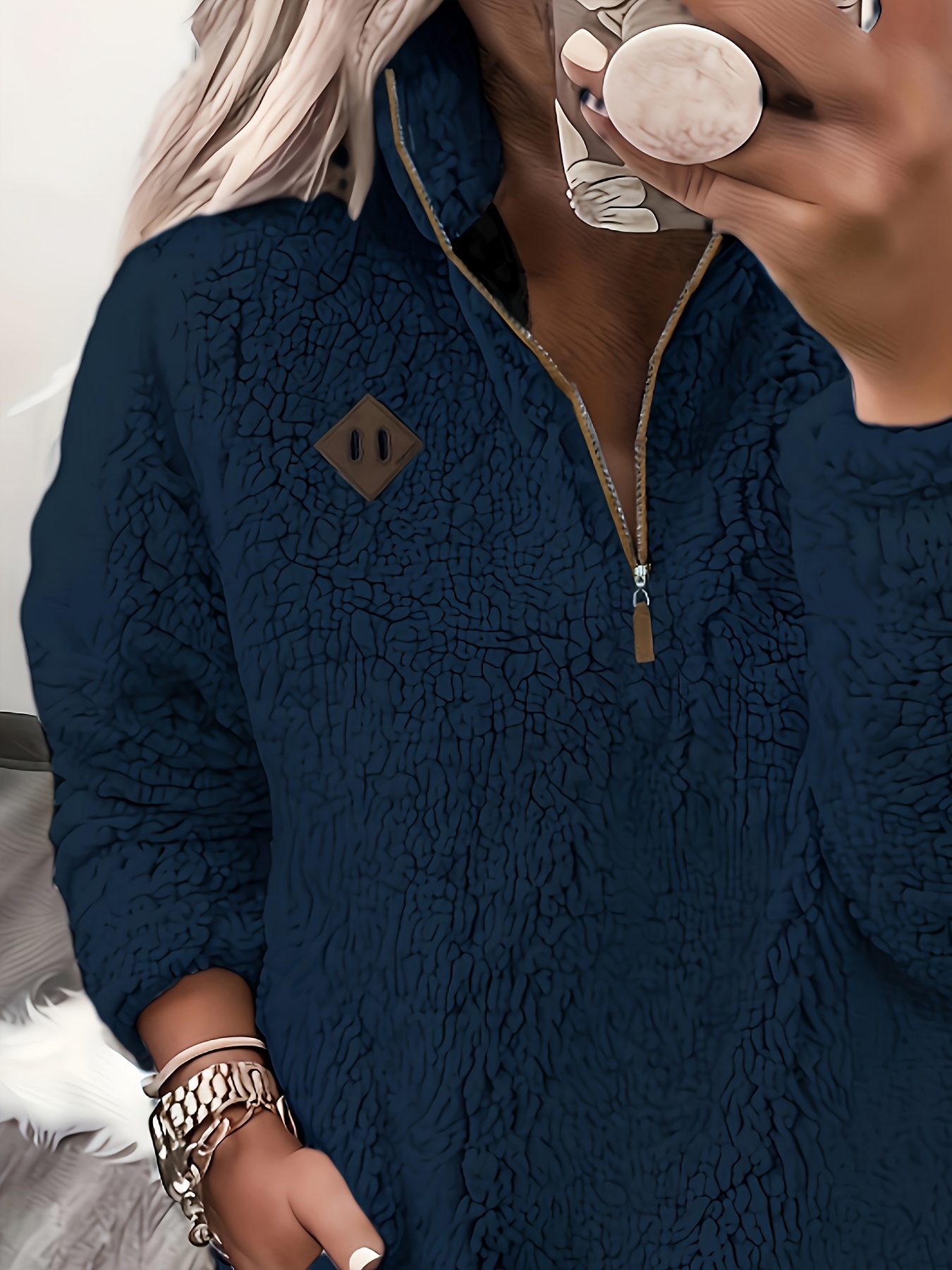 Women's Casual Fashion Pullover Zip Long Sleeve Top