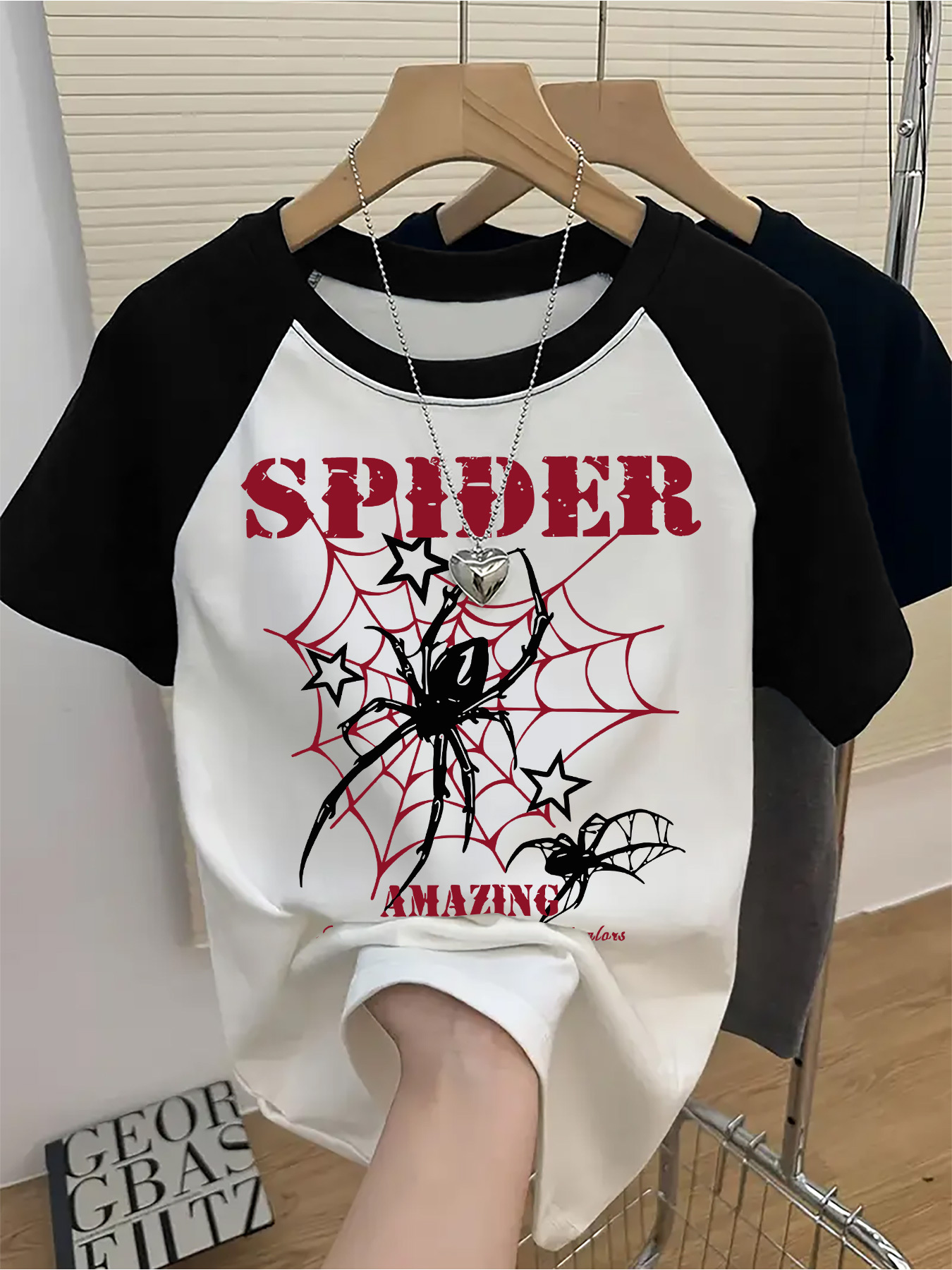 Women'S Spider Graphic T-Shirt - White & Black Color Block, Casual Crew Neck Short Sleeve Tee with "SPIDER AMAZING" Print, Lightweight Polyester for Summer, Casual Attire | Spider Graphic Tee | Glossy Texture